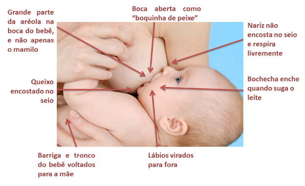 Nariz não encosta no seio e o bebê respira livremente.